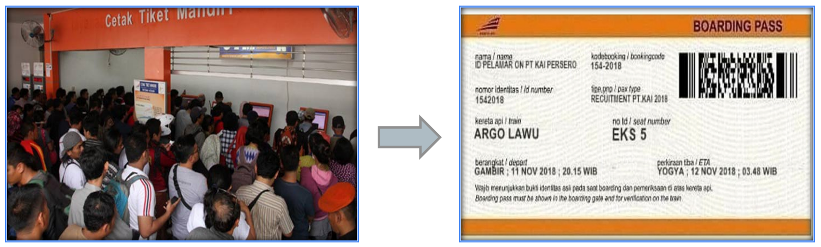 Long, Crowded, and Time Consuming Queue – Passengers who want to enter platform for boarding onto train in station must printout boarding-pass paper even though they have already had e-ticket.